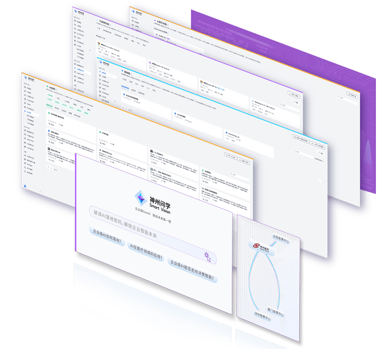 打通GenAI落地企业的算力、、、、模型、、、、知识、、、应用四大要素,,,综合解决GenAI工程在选、、练、、用、、管四大环节的问题,,,,旨在为企业的数智化转型提供全套的GenAI智能应用工程流水线。。。。南宫娱乐问学包括模型算力管理平台、、、、企业私域知识管理平台、、、、AI应用工程平台三大模块,,,为企业提供更先进、、更匹配的大模型,,解决了算力上信创适配、、融合调度、、、、企业私域大模型高效推理训练问题,,,,同时解决了数据到知识的向量化以及场景应用的轻量化组装问题。。。